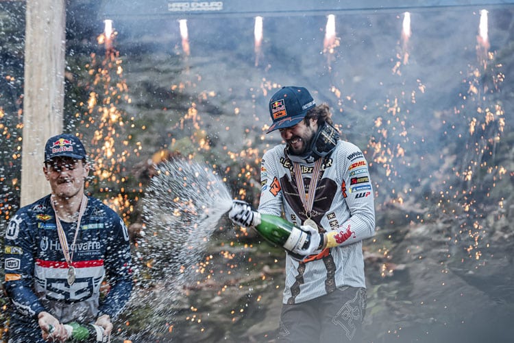 „Es war nicht einfach, zum 24MX Hixpania Hard Enduro zu kommen, wo der Titelgewinn möglich war. Ich musste mich wirklich in den Rennmodus versetzen. Rückblickend denke ich, dass es geholfen hat, als Dritter zu starten, denn ich musste sofort Billy (Bolt) und Wade (Young) einholen. Ich übernahm in der ersten Runde die Führung und gewann das Rennen und den Titel. Es war sehr emotional für mich, den Titel zurückzuholen.“