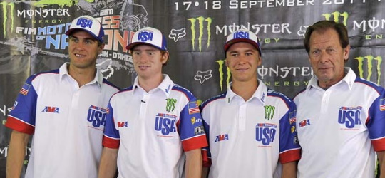 Das 65. Motocross of Nations in Saint Jean’d Angely begann am heutigen Samstag mit einer Demonstration des amerikanischen Team um Ryan Dungey MX1, Blake Bagget MX2 und Ryan Villopto Open. Im Qualifikationsrennen der MX1 konnte zunächst der Russe Evgeny Bobryshev in Führung gehen musste sich aber wenige Sekunden später hinter Antonio Cairoli und Ryan Dungey auf Rang drei einreihen. Die beiden führenden lieferten sich spannende Duelle wobei Dungey am Ende die Nase vorn hatte und Antonio Cairoli auf Rang zwei verwies. Dritter wurde Lokalmatador Christophe Pourcel.