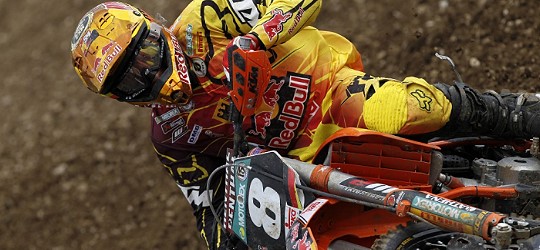 Pech hatte der MX1 Weltmeister Antonio Cairoli. Die Speerspitze des Italienischen Teams mußte mit einer gebrochenen Gabelbrücke schon im ersten Lauf die Segel streichen. Damit nicht genug, beim Sturz brach er sich auch noch das Kahnbein. Keine ideales Saisonende für Toni.