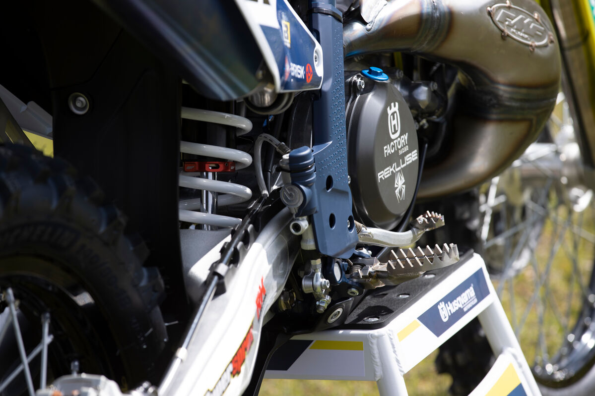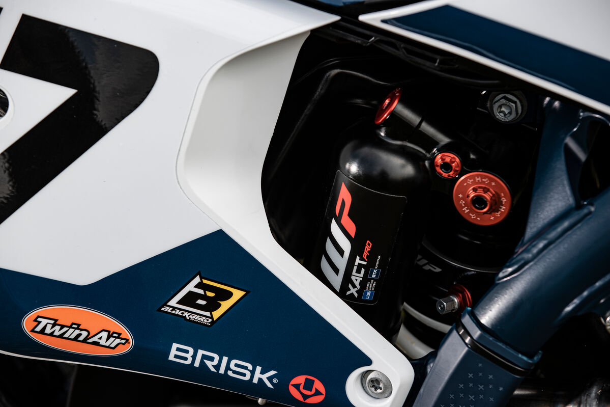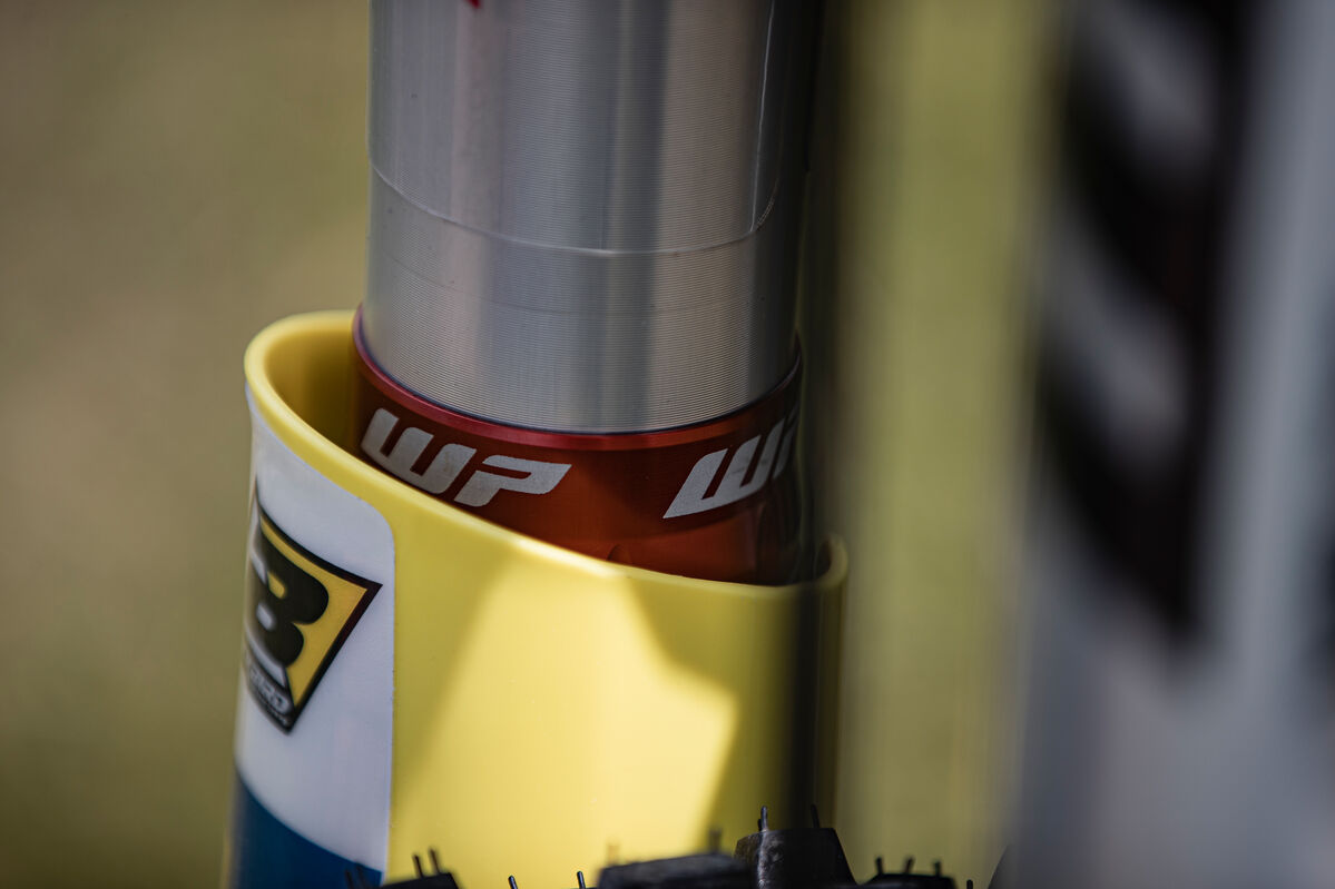 Besonders auffällig sind auch die neuen Fahrwerkskomponenten, die vermutlich nur im Husqvarna-Zubehör erhältlich sein werden. Hier setzt Billy auf einen neuen WP XACT PRO Stoßdämpfer sowie eine wahrscheinlich neue WP ConeValve Generation WP XPLOR PRO, die für eine verbesserte Fahrperformance sorgen werden.