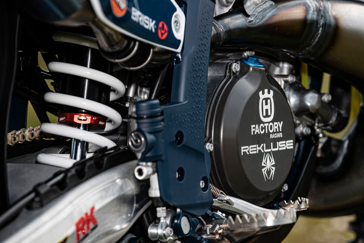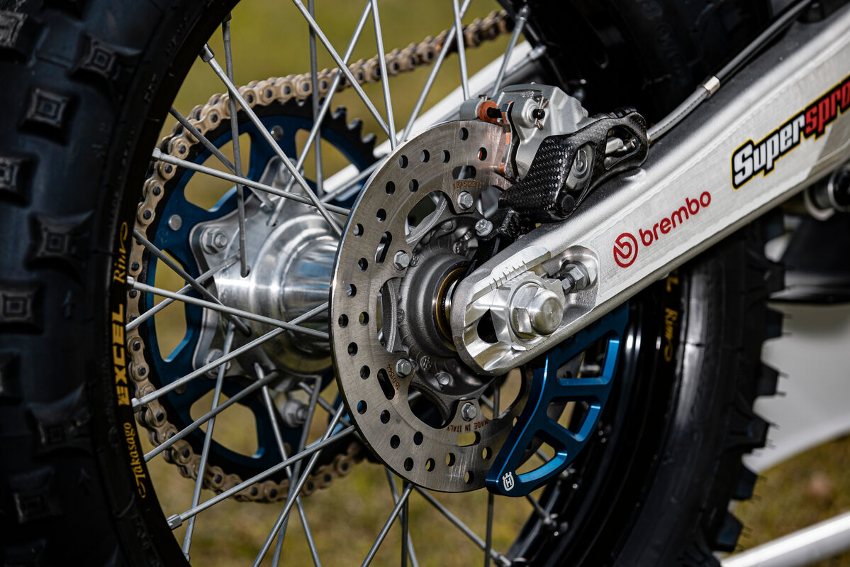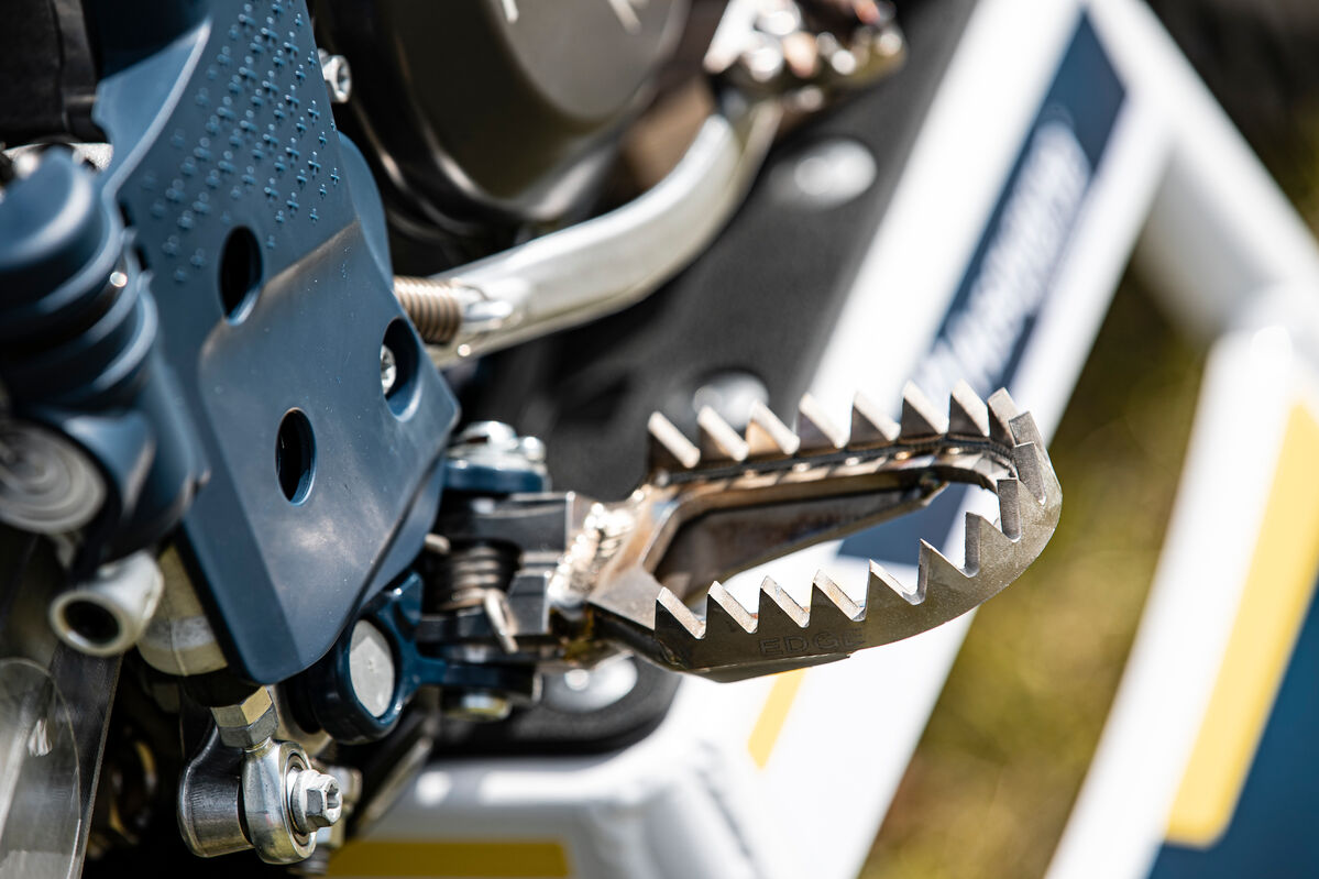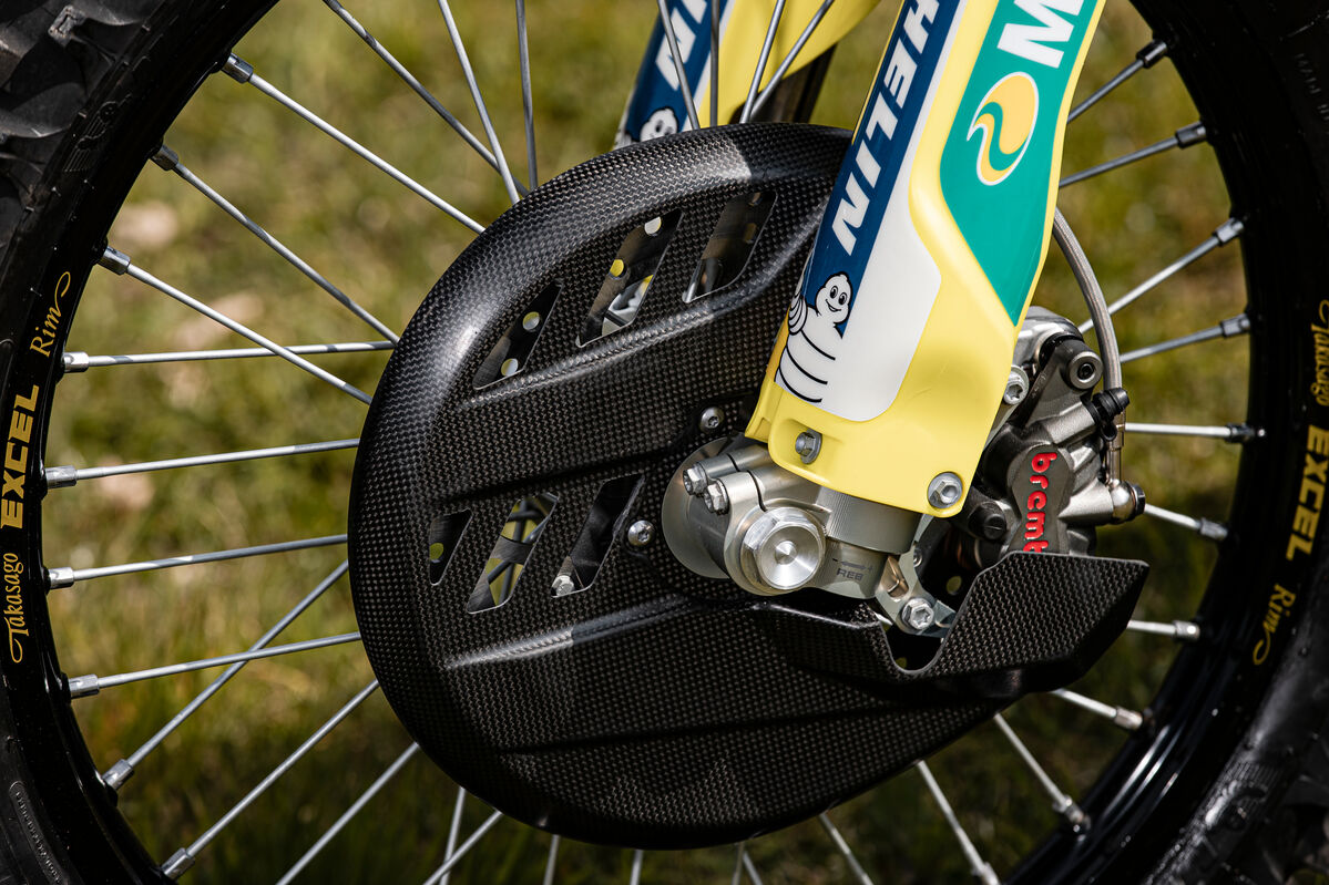 Besonders auffällig sind auch die neuen Fahrwerkskomponenten, die vermutlich nur im Husqvarna-Zubehör erhältlich sein werden. Hier setzt Billy auf einen neuen WP XACT PRO Stoßdämpfer sowie eine wahrscheinlich neue WP ConeValve Generation WP XPLOR PRO, die für eine verbesserte Fahrperformance sorgen werden.