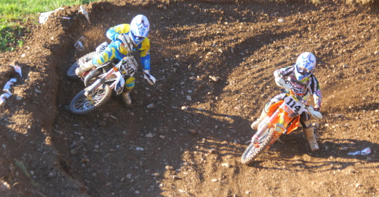Einen sehenswerten Zweikampf gab es zwischen Nico Adler (MX-Point.de Team Motocross) und KTM Sturm Pilot Jeremy Sydow. Zur Rennhalbzeit kämpfte sich Sydow an Adler heran. Beide waren Kopf an Kopf über die Tables unterwegs, Adler konnte die Angriffe aber souverän abwenden und wieder etwas Vorsprung herausfahren. Mit dem Sieg krönte sich Adler bereits vorzeitig mit den Titel in der Juniorenklasse.