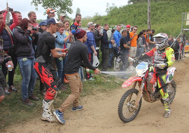 Marcus Kugler brachte dagegen den Sieg für das Enduro Cafe Penig nach 24h nach Hause. Unter den Jubel von Edward Hübner kreuzte Kugler nach 24h und 8 Minuten die Zielflagge der Maxxis Babes. Sie hatten mit 139 Runden die größte Strecke abgespult.