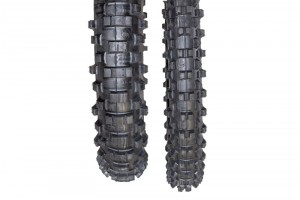 Auch der Vorderreifen ist von der Profilanordnung eng zusammen angeordnet. Jeder