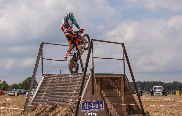 Mit 105 Startern, aus ganz Deutschland, war die 24. Auflage der Münsterland-Enduro wieder ein Highlight im Veranstaltungskalender des Enduro-Cups 2016. Viele Fahrer nutzen die Möglichkeit bereits am Freitag anzureisen und hatten rund um die Strecke ein großes Fahrerlager errichtet. Eine anspruchsvolle und selektive Fahrstrecke hatten die Verantwortlichen des durchführenden Automobil-Clubs Oelde e.V. im ADAC „Rund ums Morgenland“ aufgebaut. Ob alte Autos, Holzböcke, Reifen, Sandhügel oder enge Kehren, der Parcours war mit vielen Schwierigkeiten so konzipiert, dass es für alle Teilnehmer äußerst anspruchsvoll wurde. Eine ganz besondere Herausforderung war dabei für die Enduro-Piloten das extra hergestellte „Mobile Mountain“. Hierbei handelte es sich um eine fest installierte Brücke, die die Piloten über eine extrem steile Auffahrt erklimmen mussten und anschließend auch noch durch eine enge Durchfahrt drunter herfahren mussten. Es war also auf der Strecke ausreichend Gelegenheit das eigene Fahrkönnen und seine Grenzen auszuloten. Für die zahlreichen Zuschauer an der Strecke boten sich einmal mehr spektakuläre Sprünge und rasante Fahrmanöver.
