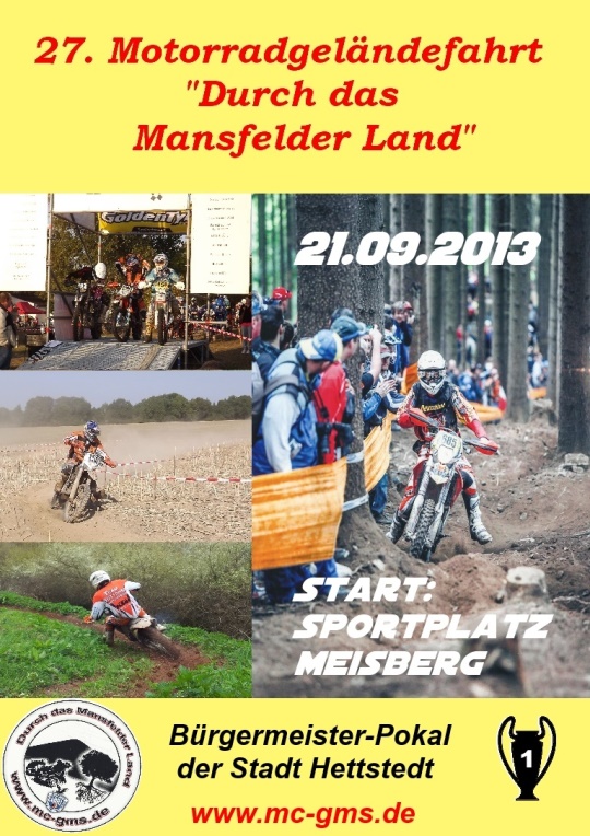 Deshalb findet nun nach der Neuauflage 2012 zum zweiten Mal eine Enduro Veranstaltung in der Neuzeit im Mansfelder Land statt. Euch erwartet ein 60km langer Rundkurs mit je einen Cross- und Endurotest pro Runde.