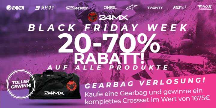 In vielen Motorradgeschäften dauert der Black Friday eine ganze Woche. 24MX gehört definitiv dazu – hier gibt’s das ganze Jahr über tolle Angebote für Dirtbike-Fahrer, aber im November wird noch einmal eine Schippe draufgelegt!