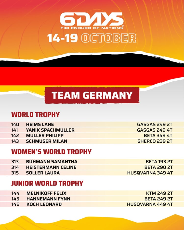 Die USA treten als Titelverteidiger im World Trophy Wettbewerb an und haben mit zwei nationalen Meistern ein starkes Team am Start. Doch der Kampf um das Podium wird hart, denn Frankreich und Großbritannien sind ebenfalls heiß auf den Titel. Auch das spanische Team, angeführt vom amtierenden FIM EnduroGP-Weltmeister Josep Garcia, möchte vor heimischem Publikum glänzen.