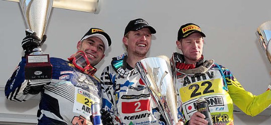 Sieger wurde überraschend Adrien van Beveren auf der Yamaha. Bei erneut sehr wechselhaften Wetter mit Regenschauern aber auch sonnigen Abschnitten setzte er sich wie schon erwähnt gegen Meo auf der 450er KTM und Steve Ramon auf Platz 3 durch.