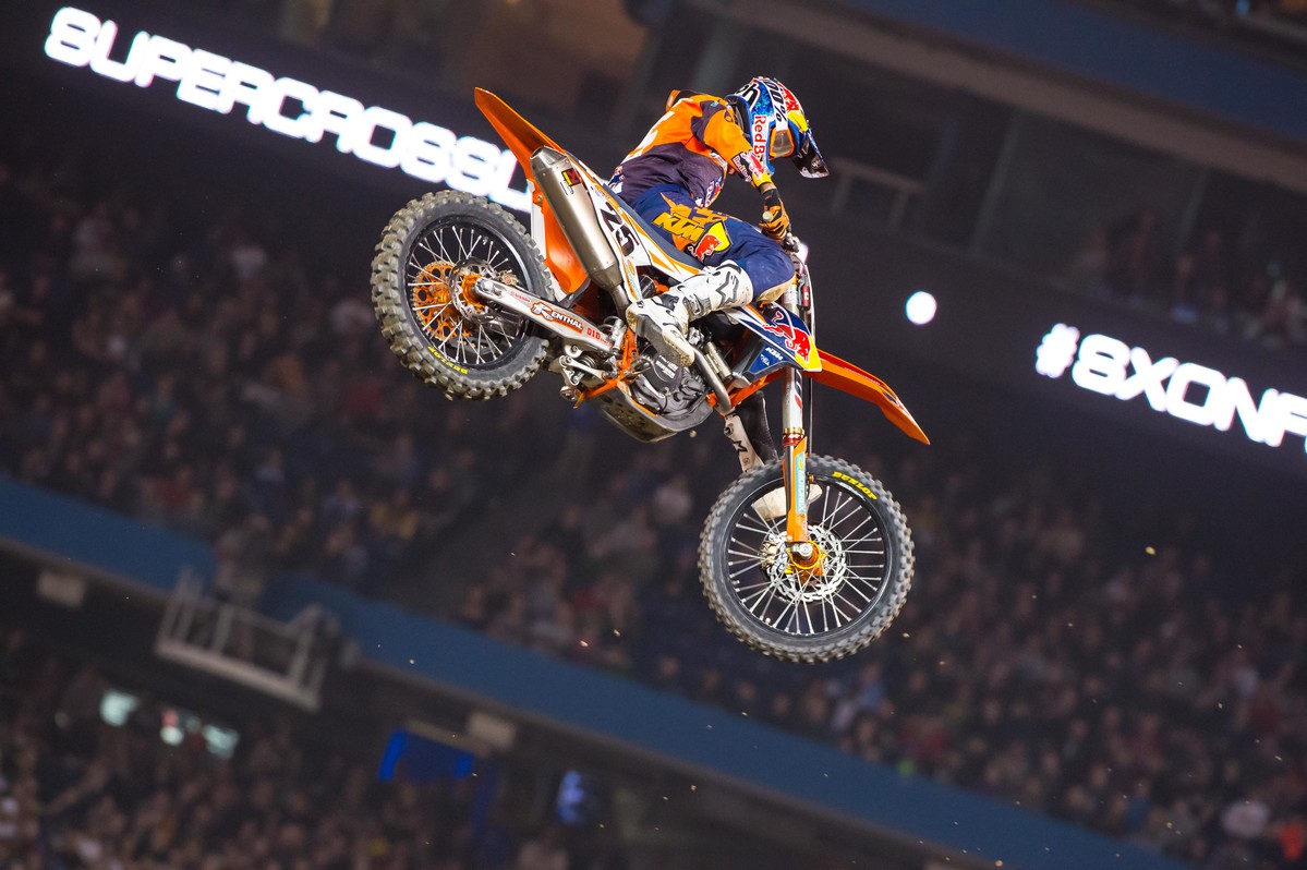 Für den Thüringer Ken Roczen bleibt es in dieser Saison bei einem ständigen auf und ab. Bisher folgte jedem Tagessieg zumeist eine kleinere Durststrecke ehe sich der Suzuki-Fahrer wieder auf dem obersten Treppchen zurückmeldet. In Toronta war nun wieder einmal soweit, Roczen gewann den 10. Lauf zur Supercross-WM eindrucksvoll. Dabei überstand er die enorm wichtige Startphase ohne Probleme und konnte sich schnell an WM-Leader Ryan Dungey und Eli Tomac vorbei arbeiten. Mit einer kontrollierten Fahrt im weiteren Rennverlauf sicherte sich Roczen schließlich relativ unspektakulär den Tagessieg.