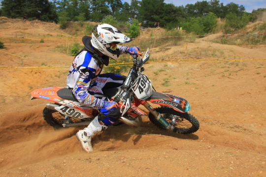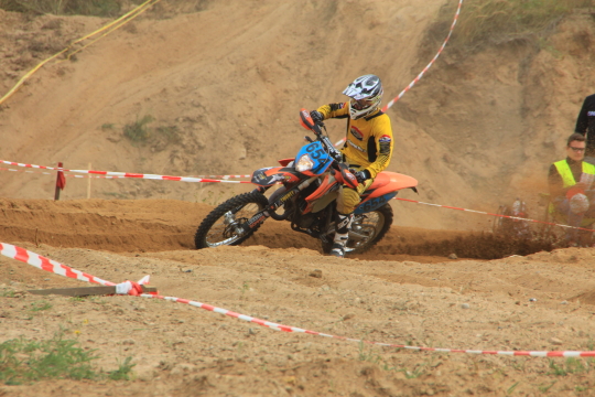 Einen Lupenreinen Doppelsieg legte Maik Schubert in den Dreck von Burg. An beiden Tagen hatte er keine Konkurrenz zu fürchten und kam auch im Championat sehr weit nach vorne: „Es lief eigentlich besser wie ich es mir vorgestellt habe. Nach und nach habe ich mich besser gefühlt auf dem Motorrad und es ging dann immer mehr. Das ich im Championat ganz vorn mitfahren überraschte mich selbst etwas.“