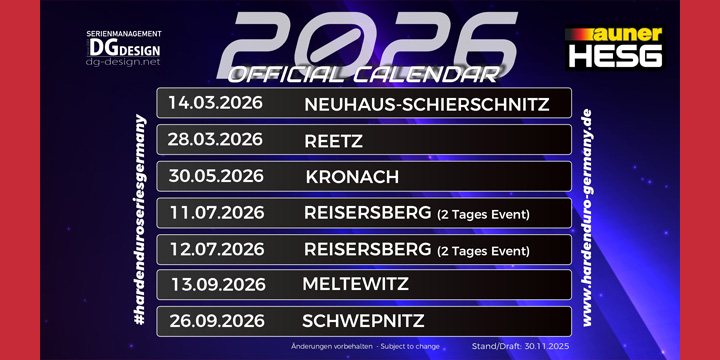 „Wir sind mit dem Kalender sehr zufrieden. Die neue Strecke in Kronach passt perfekt in die Serie und bietet den richtigen Schwierigkeitsgrad. Reisersberg wird ein Highlight, denn dort findet nicht nur unser 50. Rennen statt – es ist auch die erste Doppelveranstaltung der Seriengeschichte. Die Saison 2026 bringt viele Neuerungen und Weiterentwicklung.“