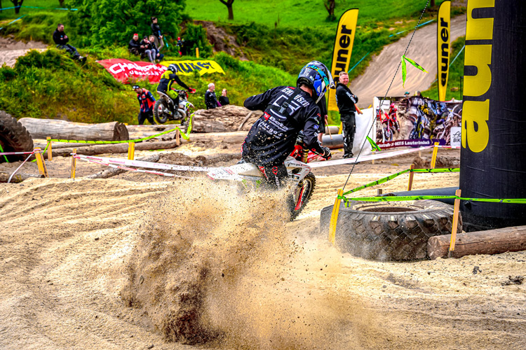 Bereits am Freitagabend wurde das Eventwochenende mit einem echten Highlight eingeläutet: einem Parallel-Endurocross unter Flutlicht. In einer eigens errichteten Arena des MSC Hamma traten je zwei Fahrer im K.O.-Modus gegeneinander an. Milan Schmüser konnte sich hier eindrucksvoll durchsetzen und sich den ersten Prestigeerfolg des Wochenendes sichern.