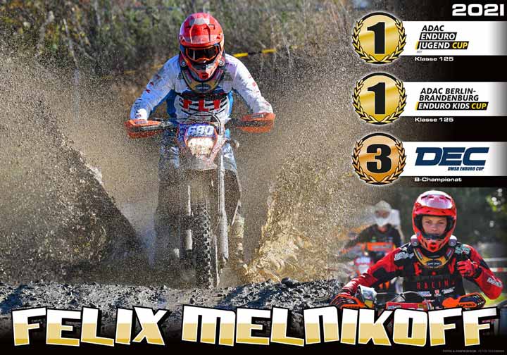 Die Saison 2021 war für mich wirklich prägend, mit insgesamt 24 Rennveranstaltungen und dem Abschied aus den regionalen Kids und Jugendklassen und natürlich mit dem Neuanfang im DMSB Enduro Jugend Cup im Rahmen der Internationalen Deutschen Meisterschaft. 2021 war für mich eine aufregende aber auch kräftezehrende Saison mit großen Herausforderungen. Daher ist es nun an der Zeit, eine Pause einzulegen und wieder Kraft zu tanken. Das Motorrad und der Wohnwagen werden winterfest gemacht und ich gehe in die Trainingspause. Im Hintergrund basteln meine Eltern bereits an den Plänen für die neue Saison mit Altbewährtem aber auch einigen Veränderungen. Davon berichte ich dann in meiner nächsten Kolumne. Bei allen Fans und Unterstützern bedanke ich mich für ein unvergessliches Jahr und wünsche eine besinnliche Adventszeit und FROHE WEIHNACHTEN.