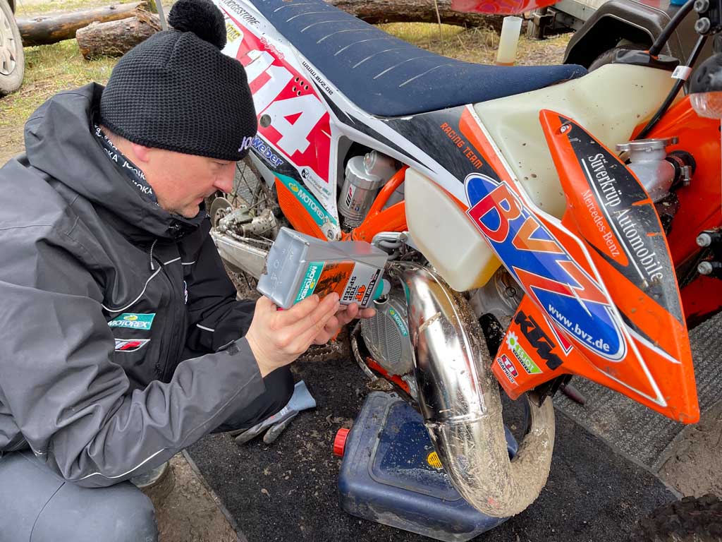 Am Sonntag in Burg stand dann der erste Ölwechsel auf dem Plan und danach konnte es dann auch mit dem neuen Bike zur Sache gehen. Trotz unveränderter Grundeinstellungen fährt sie sich super und der neue E-Starter ist ein sehr praktisches Helferlein fürs Endurofahren. Nach den ersten beiden Enduro DM Läufen im März ist ein ausführlicher Testbericht mit Marko Bartel geplant. Bis dahin werde ich mein neues Bike schon in den ersten Rennen auf Herz und Nieren geprüft haben.