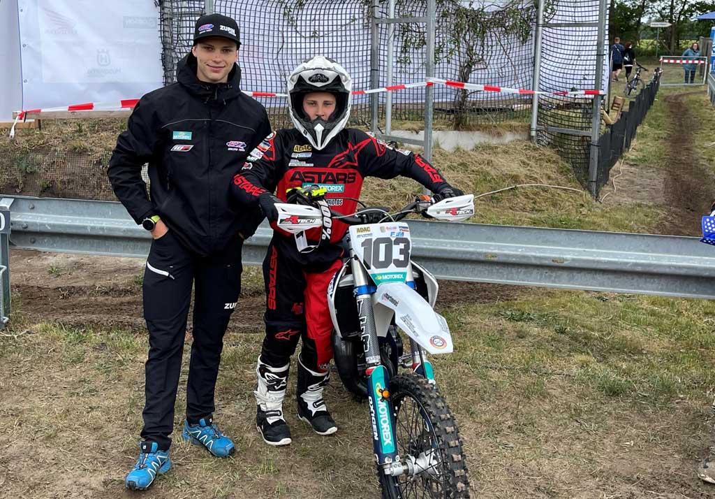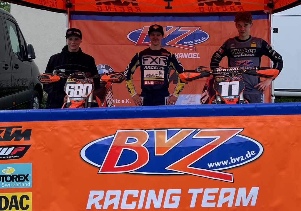 Auch an meinem rennfreien Wochenende war ich am Start. Dieses Mal aber als Betreuer für meinen Großcousin Martin aus Andorra, der bei den MX Masters in Dreetz für den ADAC Berlin Brandenburg an den Start ging. Auch David und Bert waren vor Ort, um Trey Cox, den Sohn der Enduro Legende Alfie Cox, aus Südafrika bei seinem ersten Rennen in Deutschland zu betreuen. So ging es unter dem Zelt des BVZ Racing Teams richtig international zu. Eine bessere Vorbereitung für meine mündliche Englischprüfung hätte ich kaum haben können. Es war gut einen Renntag mal wieder aus einer anderen Perspektive zu erleben. So wird einem mal wieder bewusst, was Betreuer und Mechaniker so leisten. Es hat mir echt viel Spaß gemacht, doch auf die Dauer wäre das nichts für mich. Am Streckenrand zu stehen strapaziert meine Nerven viel extremer, als selbst am Startgatter zu stehen und am Ende macht selber zu fahren immer noch am meisten Spaß.