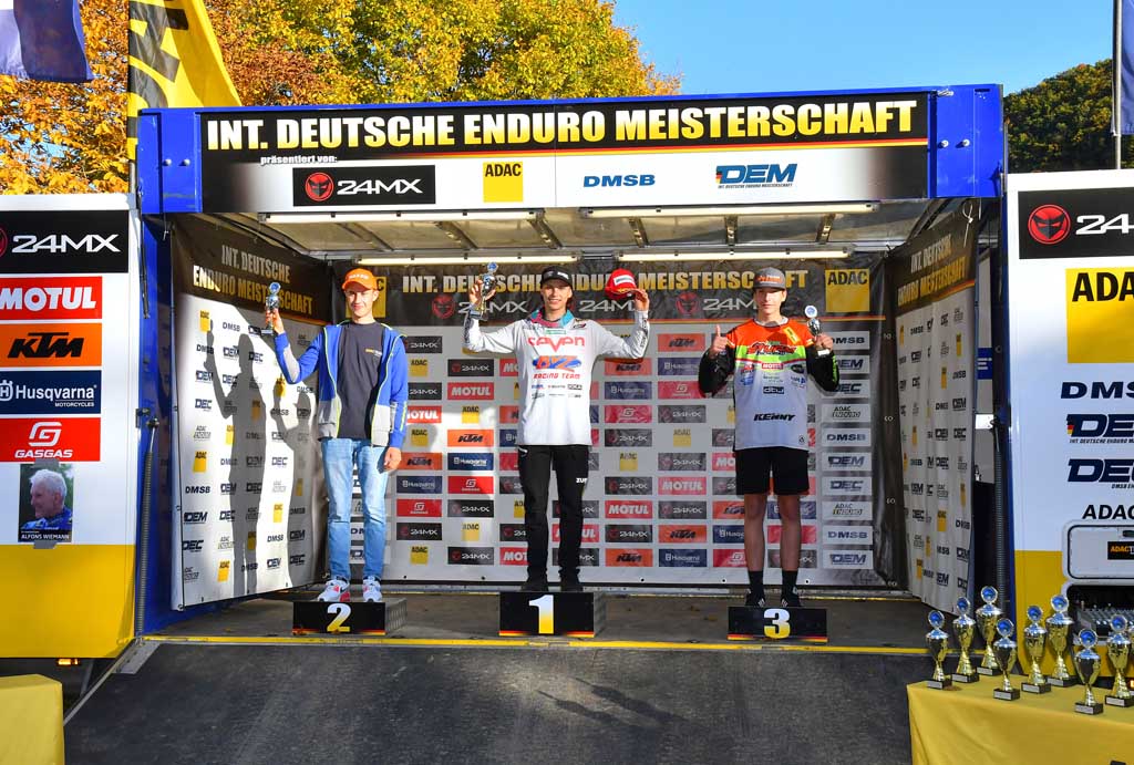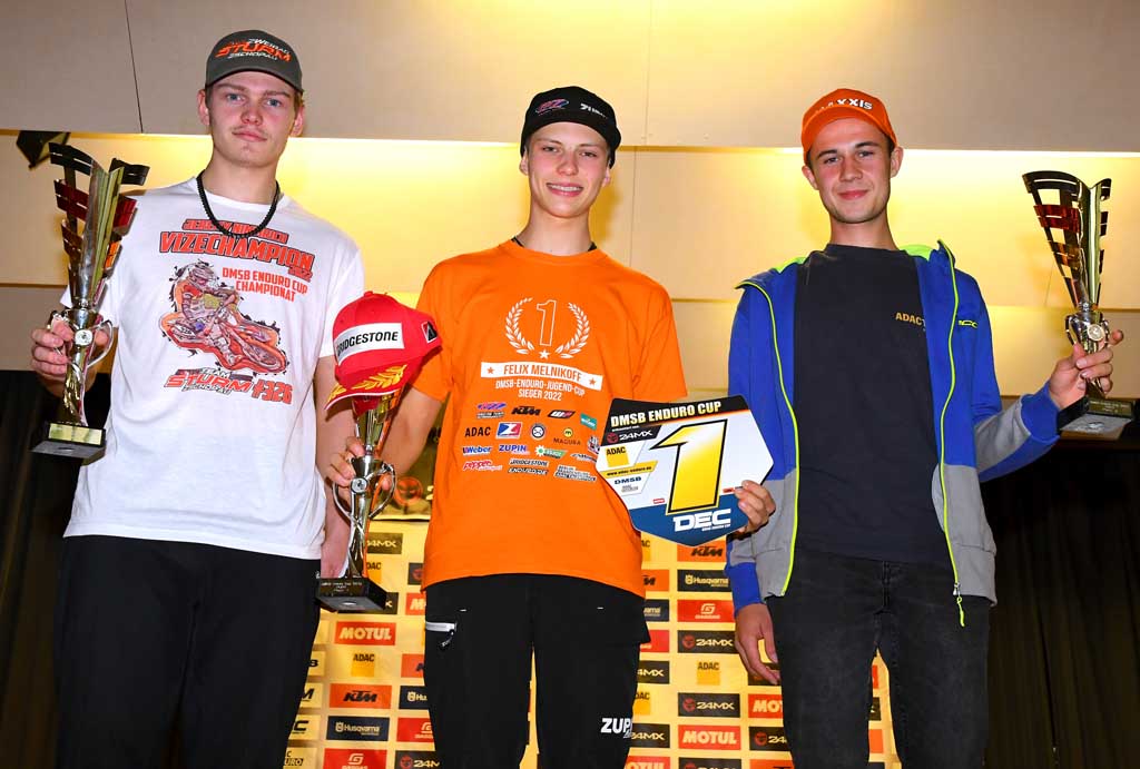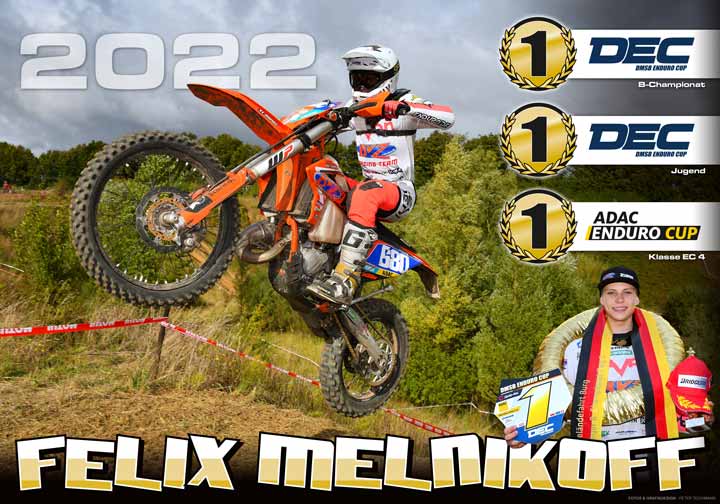 In der Meisterschaft hatte dieses Ergebnis für mich auf den Punkt gepasst. In meiner zweiten Saison im Deutschen Enduro Cup konnte ich in der Jugend Klasse fünf von sieben Läufen gewinnen und nach drei Siegen, zwei zweiten Plätzen, einem Platz drei und einem vierten Platz im klassenübergreifenden B-Championat am Ende die meisten Punkte sammeln. Tatsächlich bin ich damit, als 16-jähriger nun der jüngste Gesamtsieger des Deutschen Enduro Cups und zugleich der jüngste Deutsche Enduro Meister in de 125ccm Klasse. Besser hätte die Saison 2022 für mich nicht laufen können. Ein riesiges Dankeschön geht an meine Familie, an mein BVZ Racing Team, den ADAC Berlin Brandenburg, an Dennis Schröter und an alle meine Unterstützer, die mir diesen Erfolg ermöglicht haben.