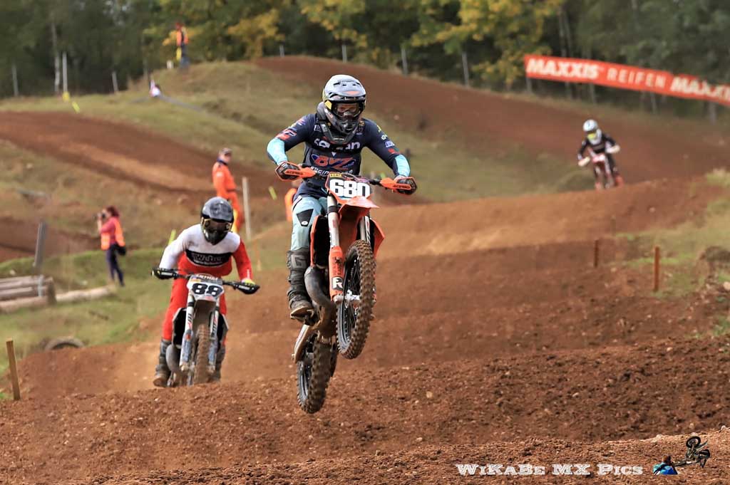 Es war schon ein ziemlich perfektes Finale. Auf der Hartbodenstrecke in Thurm bei super Wetter und gut fahrbarem Boden kam ich in beiden Läufen beim Start gut weg und konnte nochmals zwei gute Rennen fahren und mit Platz 9 und Platz 8 in den Top 10 finishen. Damit war ich voll zufrieden und es war ein gelungener MX Saisonabschluss für mich.