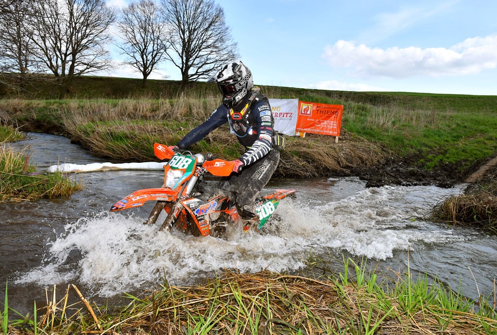 Wie in jedem Jahr, und sogar im Programmheft für die zahlreichen Zuschauer als Highlights der Veranstaltung ausgewiesen, erwarteten uns Fahrer beim zweiten Lauf der Internationalen Deutschen Enduro Meisterschaft nicht nur zwei anspruchsvolle Sonderprüfungen in Dahlen und Meltewitz, sondern auch wieder einige Schlammpassagen und die berühmt berüchtigte Dahle-Durchfahrt. Ich kann nicht verstehen, dass die Schlammpassagen für die Zuschauer cool anzuschauen sind aber trotz dessen sind diese alljährlich wieder dabei. Bei uns Fahrern sind sie wenig beliebt.