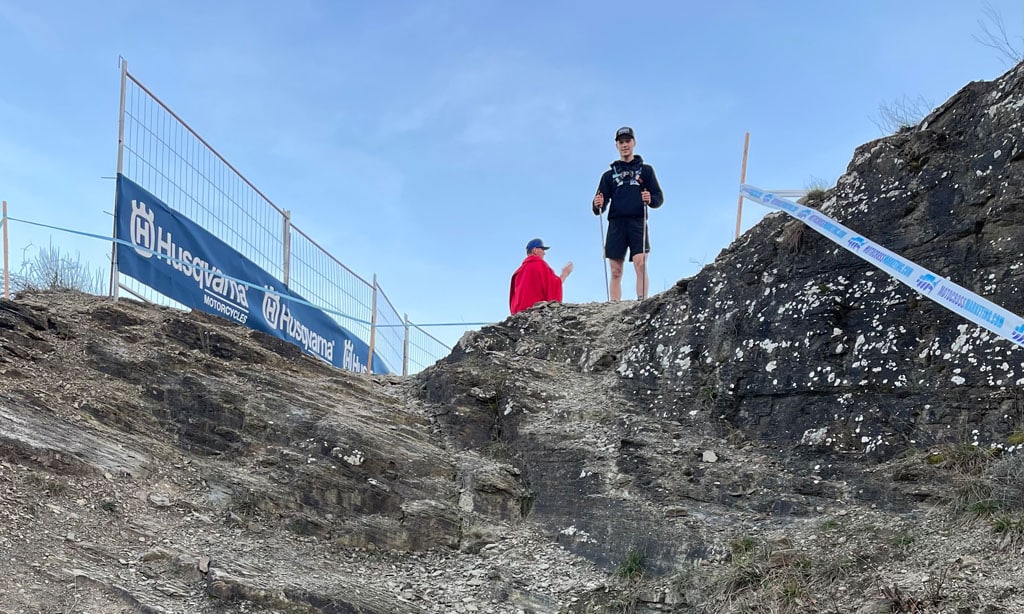 Nun aber zur Strecke: mit harten und steinigen Bodenverhältnissen hatte ich in Italien schon gerechnet, aber dass unter den losen Steinen dann auch noch Steinplatten stecken, das war mir neu. Gerade im Extremtest mit krassen Auf- und Abfahrten war das schon anders als gewohnt und sorgte für einige Diskussionen beim gemeinschaftlichen Strecke ablaufen. Trotz alledem entschied ich, schon in der ersten Runde die Steinkante im Extremtest zu springen. Mein Plan ging auf und so fuhr ich damit sogar die beste deutsche Zeit in der ersten Runde. In der zweiten Runde wollte ich dann noch mehr puschen und ans Limit gehen, bin dabei aber leider mehrmals zu Boden gegangen. Mit der Zeit gewann ich dann wieder mehr Vertrauen zur Strecke und brachte den ersten Renntag mit P12 zu Ende, konnte also meine ersten EM Punkte mitnehmen.