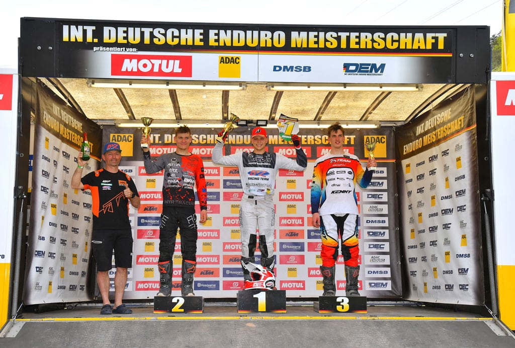 Nach vier Läufen in der Enduro DM ist die halbe Saison schon wieder gelaufen und ich gehe mit der Führung in der J2 und mit P18 im A-Championat in die viermonatige Enduro DM Pause, bis wir uns alle Ende August in Burg wiedersehen. Vier Monate ist schon echt lang und so ist es gut, dass ich mich noch auf die beiden Enduro EM Läufe im Juni in San Marino und Mitte August in Finnland freuen kann. In der Zwischenzeit hole ich dann mal wieder meine SX 125ccm raus und werde den ein oder anderen Motocross DM Lauf mitfahren. Mal schauen, was da so geht. Davon erzähle ich dann beim nächsten Mal.