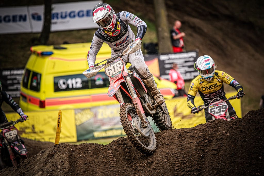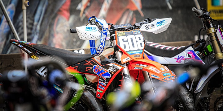 In diesem Jahr überschneiden sich leider einige Läufe der Deutschen Motocross Meisterschaft mit der Enduro Europameisterschaft. Also hatte ich beim MSC Moorgrund erstmals die Chance, mich in die DM einzuklinken. Schon beim Zeittraining zeigte sich, dass ich in den Top Ten mitfahren kann und so gab ich beim ersten Start so richtig Gas und presste mich schon als zweiter durch die erste Kurve. Das ließen sich die Top Fahrer der DM natürlich ungern gefallen, und so lieferten wir uns einige Zweikämpfe. Am Ende landete ich auf P5 und P8. Das war für mein erstes MX DM Rennen schon mal ein guter Einstand und ich wusste, woran ich für die nässten Rennen arbeiten kann.