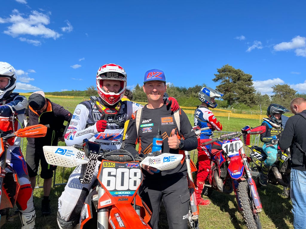 Im ersten Lauf war ich gut vorn dabei und konnte P7 einfahren. Im zweiten Lauf kam ich gleich nach dem Meisterschaftsführenden um die erste Kurve und von da an ging es heiß her. Nach so einigen Zweikämpfen war es für mich der vierte Platz und somit mein bestes Ergebnis, dass ich bisher in der deutschen Motocross Meisterschaft einfahren konnte.