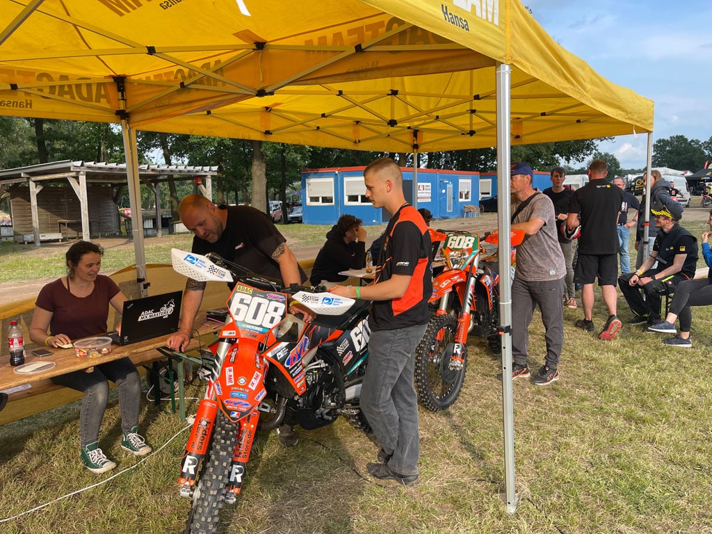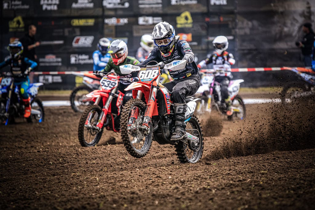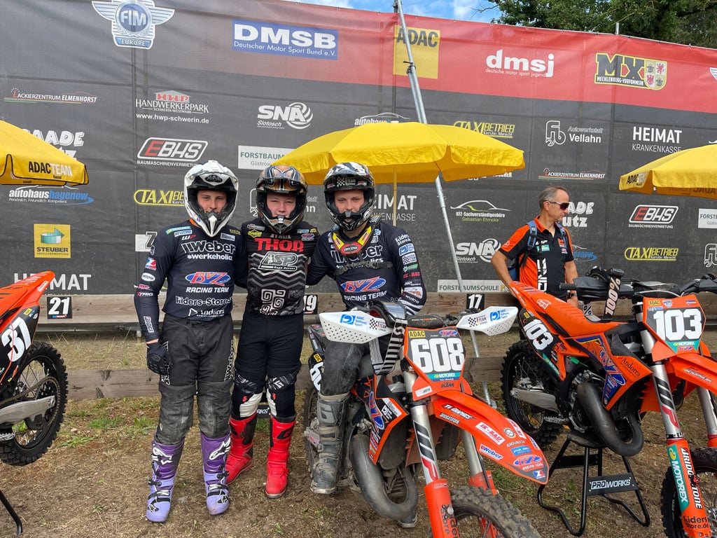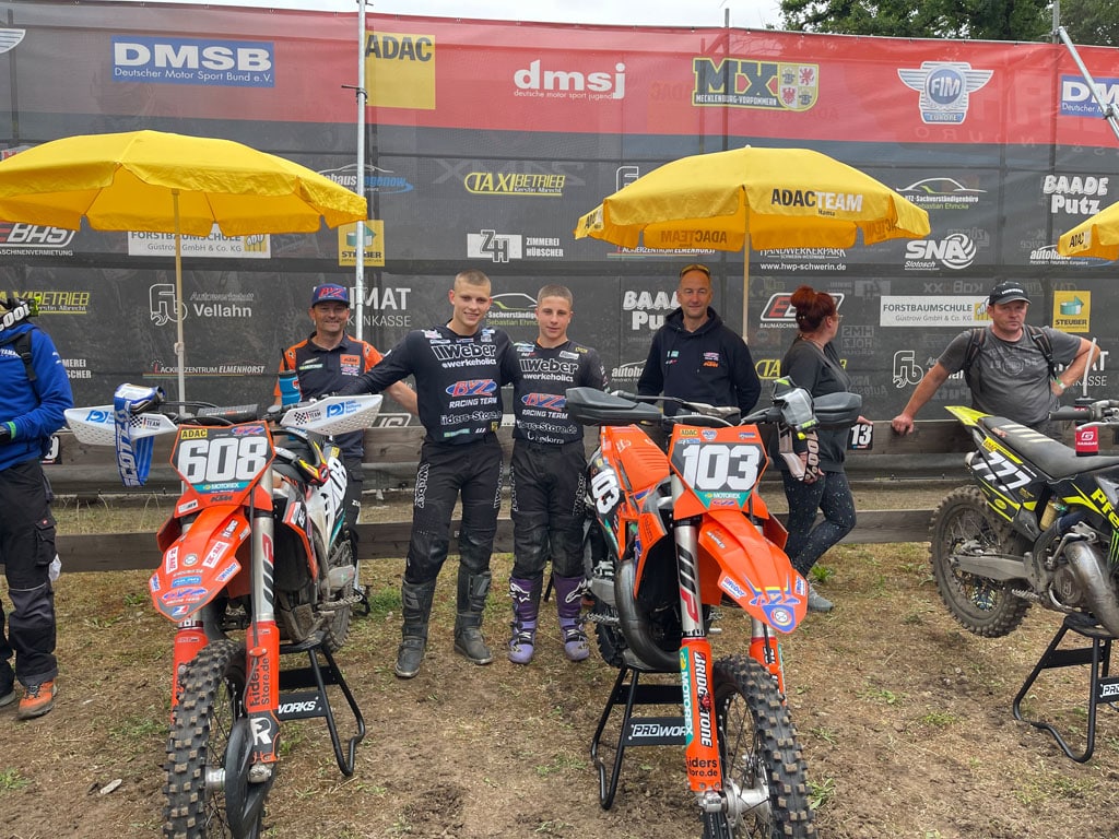 Ein wenig von meinen guten Ergebnissen aus der DM beflügelt, entschieden wir uns ganz spontan, uns um einen Startplatz bei den ADAC MX Masters in Vellahn zu bewerben. Dort sollte das BvZ Racing Team mit insgesamt neun Startern einen starken Team Auftritt hinlegen. Schnell bekam ich die Zusage für mein erstes MX Masters Rennen. Es war auch richtig cool, denn mein Kumpel Trey Cox aus Südafrika war auch angereist, um in der 125ccm Klasse zur starten. Auch mein Großcousin Martin aus Andorra war mit von der Partie und so waren wir eine coole Hufo-Truppe. Auf der Strecke aber merkte ich schnell, dass hier keiner zum Spaß angereist war und es bei den Masters noch einmal krasser zur Sache geht als in der Deutschen Meisterschaft.