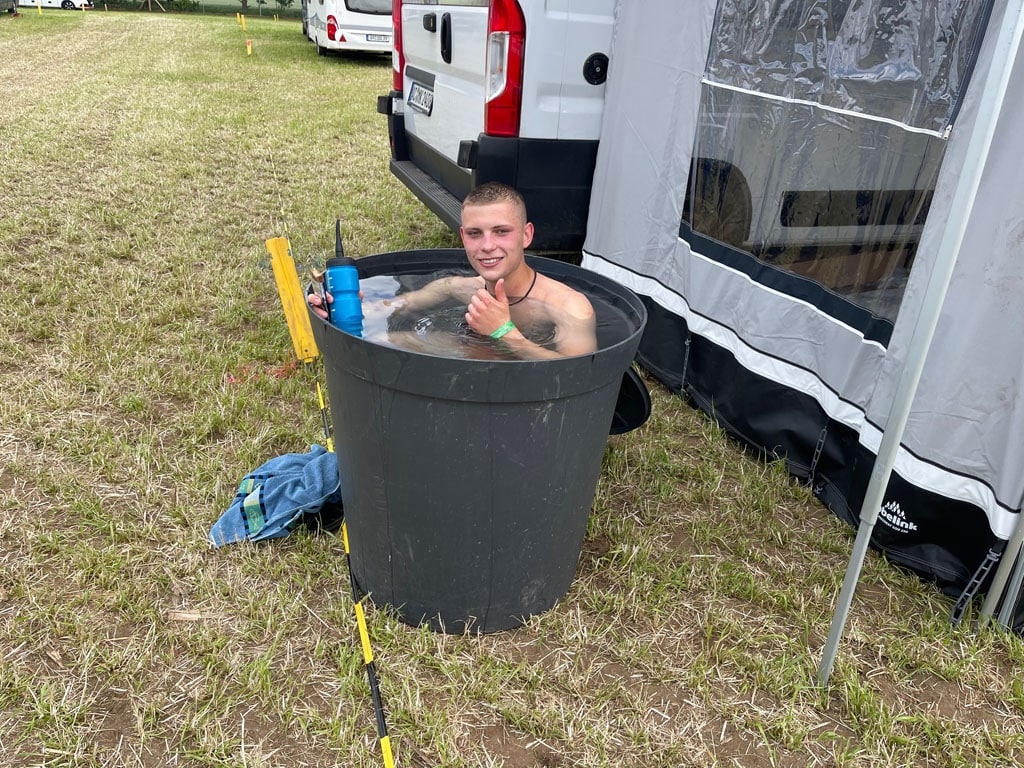 Qualifiziert hatte ich mich also, doch nun galt es erst einmal zu checken, wie schlimm es mich erwischt hatte. Da war es praktisch, dass ich direkt vor der Nase von Kolja, einem Sportwissenschaftler, den ich von der ADAC Stiftung Sport schon kannte, gestürzt war, denn der nahm sich gleich meinem Elend an. Erst steckte er mich in die Eistonne, um dann abzutasten, ob noch alle Knochen heile geblieben sind. Dank meiner Ortema Vollmontur war tagsächlich nichts Schlimmeres passiert und so rückte Kolja schnell alles wieder gerade und schickte mich, frisch getappt wieder auf die Strecke. Vielen lieben Dank noch mal an Kolja für die hervorragende Betreuung am gesamten Wochenende.