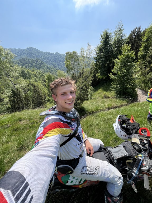 Ich bin auch in diesem Jahr wieder Teil der Junior Trophy Nationalmannschaft, ein riesiges Ding für mich und eine große Ehre. Also dachte ich: Warum nicht vorab schon mal das Gelände checken? Dank Wolfgang Koch konnte ich mir einen richtig exklusiven Kontakt für ein Trainingslager in Italien sichern, In der Nähe von Bergamo, dort wo auch die Enduro Six Days stattfinden werden, ist Klaus, mein Guide fast schon zu Hause und kennt nicht nur jeden Italiener vor Ort, sondern auch das Gelände, wie seine Westentasche. Berge, Steine, knackige Auffahrten, Flussbetten, genau das, was uns wahrscheinlich auch im Rennen erwartet. Vielen Dank an Wolfgang für den Kontakt und an Klaus, der mich vor Ort als Guide begleitet hat und gute Besserung an Leo, der leider nicht dabei sein konnte.