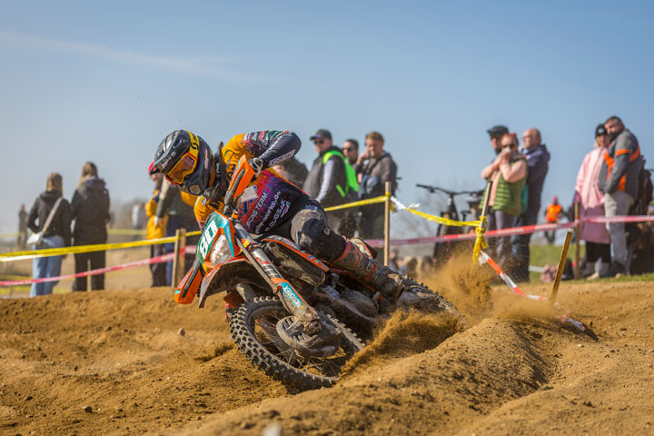 Vom Ablauf her war es fast schon ähnlich wie in Hänchen. Im ersten Lauf lief es ganz ordentlich. Im zweiten Lauf hatte ich dann sogar fast den Holeshot und bin als Erster in die Kurve gegangen. Das war natürlich erstmal ein richtig gutes Gefühl. Leider wurde ich dort dann von hinten ziemlich hart angeschoben und stürzte und plötzlich fuhr das komplette Fahrerfeld wieder an mir vorbei.