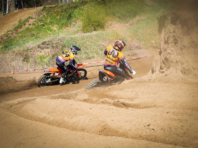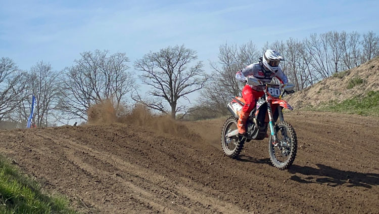 Deshalb war die Idee, in den nächsten Wochen so viele Motocross-Rennen wie möglich mitzunehmen. So bin ich am Ostermontag bei meinem Heimatverein MSC Hänchen in der Landesmeisterschaft MX2 Berlin-Brandenburg gestartet. Das Fahrerfeld war richtig stark und gut besetzt. Da wir dort gemeinsam mit den Seitenwagen und Quads auf einer Strecke gefahren sind, kamen die Bedingungen dem Enduro sogar ziemlich nahe.