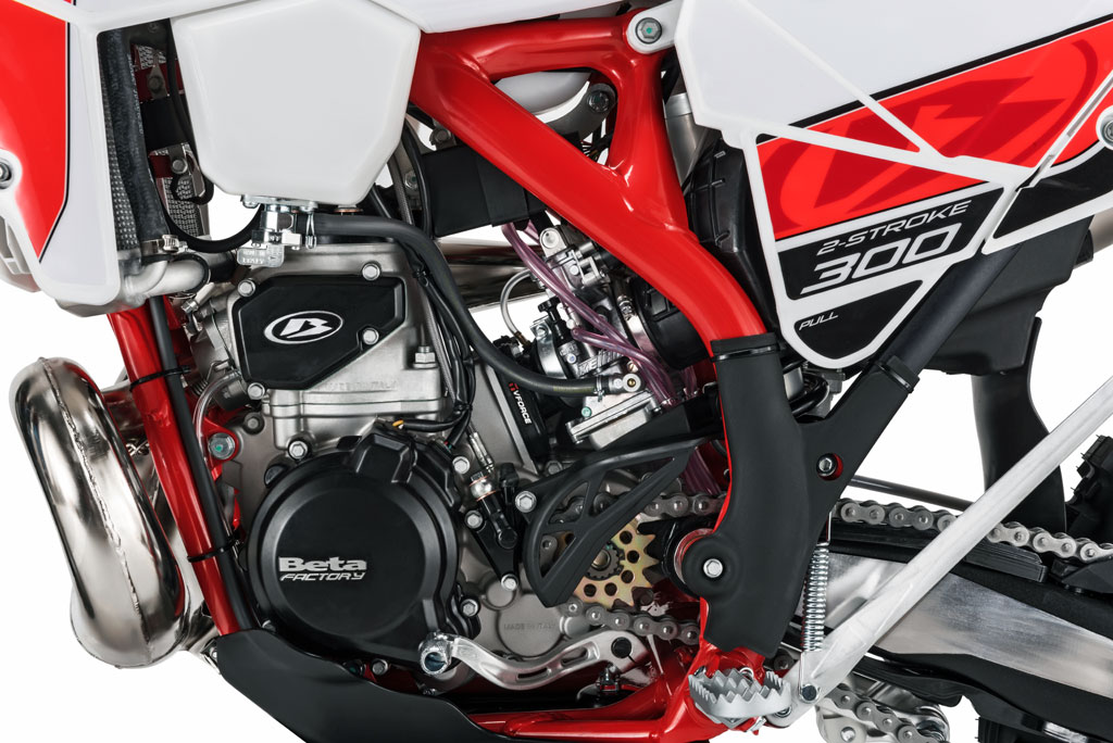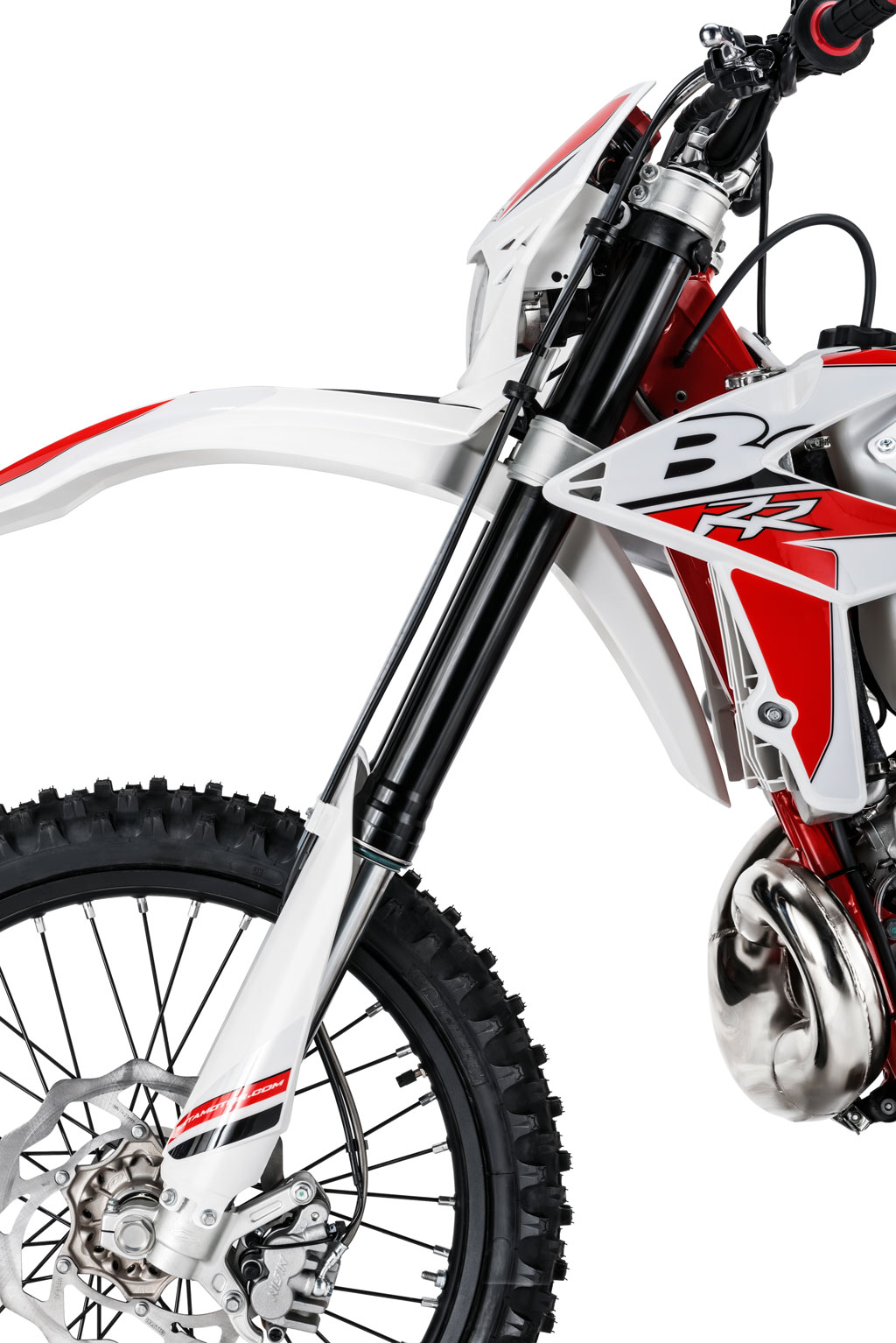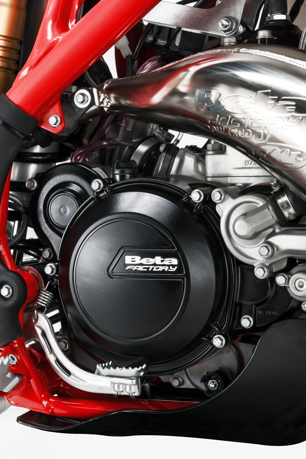 250 ccm: Die kleinste Beta, perfekt für alle, die ein 2-Takt-Bike mit einem sanfteren Charakter und etwas niedrigerer Leistung und Drehmoment suchen, um ein ausgezeichnetes Handling zu gewährleisten. Kein Zweifel, dieses Bike ist diese Saison der Protagonist in der E2-Klasse der Enduro-WM.