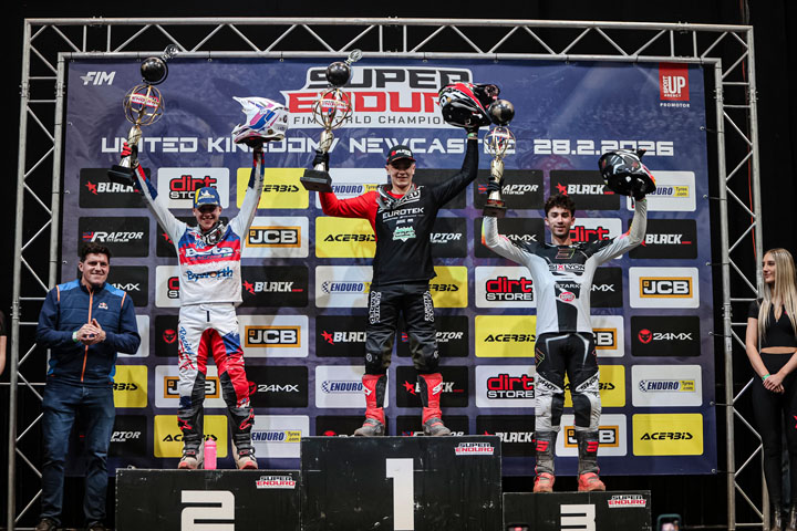 Die sechste und vorletzte Runde der FIM SuperEnduro-Weltmeisterschaft 2025/2026 in Newcastle hatte alles, was Hallen-Enduro so extrem macht: volle Ränge, brutale Rock-Garden-Sektionen, Highspeed-Passagen – und am Ende einen Weltmeister, der vor heimischem Publikum Geschichte schreibt.