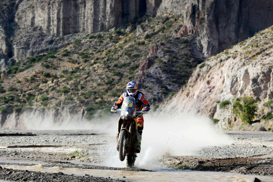 Die gestrige fünfte Etappe von Jujuy nach Uyuni stand ganz im Zeichen der KTM-Werkstruppe. Tagessieger über eine Distanz von 642 Kilometern, davon waren 327 Kilometer Wertungsprüfung, wurde Toby Price. Der Australier konnte damit einige Zeit auf den Gesamtführenden Paulo Goncalves gut machen. Die Überraschung des Tages dürfte zunächst das Abschneiden von Dakar-Rookie Antione Meo gewesen sein. Dem Franzose gelang mit Tagesrang zwei ein sensationelles Ergebnis, das wurde jedoch später annulliert. Denn Meo kassierte nachträglich fünf Strafminuten und rutschte somit auf den achten Platz zurück.