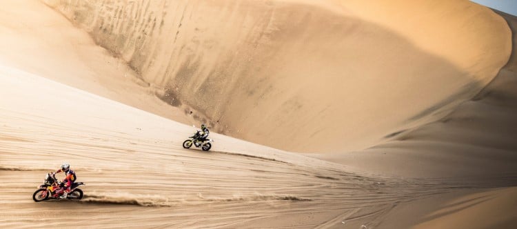 | Provisional Results Stage Nine – 2019 Dakar Rally 1. Michael Metge (FRA), Sherco, 3:46:38 2. Daniel Nosiglia (BOL), Honda, 3:48:38 +2:00 3. Pablo Quintanilla (CHL), Husqvarna, 3:50:06 +3:28 4. Matthias Walkner (AUT), KTM, 3:50:07 +3:29 5. Toby Price (AUS), KTM, 3:50:07 +3:29 Provisional Standings after Stage Nine – 2019 Dakar Rally 1. Toby Price (AUS), KTM, 32:43:15 2. Pablo Quintanilla (CHL), Husqvarna, 32:44:17 +1:02 3. Matthias Walkner (AUT), KTM, 32:49:50 +6:35 4. Andrew Short (USA), Husqvarna, 33:23:16 +40:01 5. Xavier de Soultrait (FRA), Yamaha, 33:30:59 +47:44 Foto: Marcin Kin |