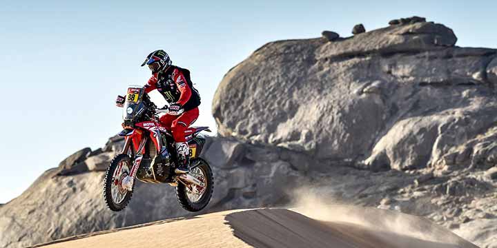 - Nach einem Sturz bei einem Sprung über eine Düne hat sich Kevin Benavides gestern die Nase gebrochen, aber der Tabellenführer von gestern ist heute Morgen gestartet und durfte als erstes in den heutigen Special fahren.