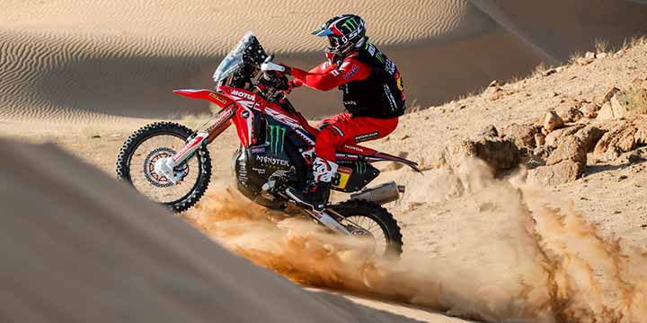 Der zweite Tag der Dakar war für alle Teilnehmer unglaublich hart. Die insgesamt 685 km lange Etappe von Bisha nach Wadi Ad-Dawasir umfasste ein langes Special von 457 km. Die Etappe forderte die Fahrer mit extrem weichen Sanddünen und später gab es dann schnellere, sandige Strecken, die sich durch eine Reihe von Canyons schlängelten. Eine genaue Navigation war erneut der Schlüssel zum Erfolg. Joan Barreda vom Monster Energy Honda Team gewann den heutigen Tag eindrucksvoll vor seinem Teamkollegen Ricky Brabac. Dritter wurde Pablo Quintanilla vom Rockstar Energy Husqvarna Factory Racing Team.