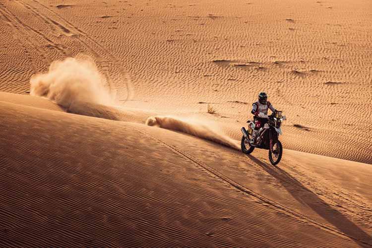 „Die Etappe war gut – rund 150 Kilometer Dünen. Ich hatte am Anfang einen kleinen Sturz, möglicherweise weil ich etwas zu hart gefahren bin. Aber danach habe ich meinen Rhythmus gefunden und konnte wieder pushen. Mitte der Etappe sah ich Matthias (Walkner) mit dem Helikopter am Boden liegen. Ich hoffe natürlich, dass mit ihm alles in Ordnung ist und wünsche ihm eine schnelle Genesung. Danach bin ich bis ins Ziel gefahren und denke, dass ich einen guten Job gemacht habe. Für den Etappensieg hat es zwar nicht ganz gereicht, aber ich bin zufrieden, wie ich gefahren bin.“