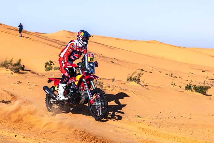 „Die Etappe lief heute gut für mich. Ich hatte Glück, dass ich etwas weiter hinten gestartet bin, da es wirklich schwierig gewesen wäre, die Etappe zu eröffnen. Wir konnten die Jungs langsam einholen, was wiederum dazu führte, dass wir nach dem Tanken in einer großen Gruppe durch die Dünen ins Ziel rasten. Ich bin Gesamtzweiter und habe jetzt den Ruhetag, um meine Akkus wieder aufzuladen, also insgesamt eine gute erste Woche.“