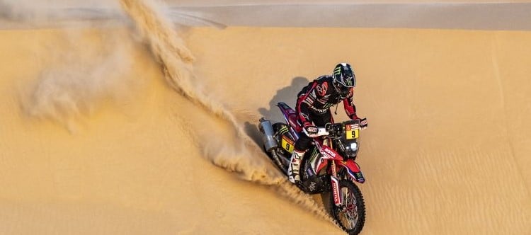 Die Fahrer des Monster Energy Honda Teams Joan Barreda, Ricky Brabec und Kevin Benavides schafften es am Ende der Tagesetappe, die aufgrund des schlechten Wetters abgebrochen wurde, auf das Podium. Die zehnte Etappe der Rallye Dakar – zunächst mit 534 Kilometern über zwei gezeigte Sektoren geplant – wurde auf eine einzige Prüfung verkürzt, als auf dem zweiten Abschnitt starker Wind vorhergesagt wurde. Die Fahrer wurden direkt zum Biwak in Shubaytah umgeleitet, um den Wind zu vermeiden, der die Sicherheit der Teilnehmer hätte gefährden können.
