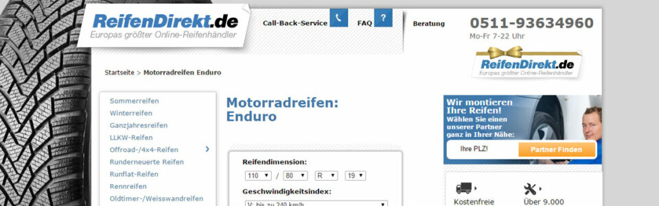 Reifendirekt.de hat ein „ausgezeichnetes Profil“; der Onlineshop fuhr vielfach als Testsieger