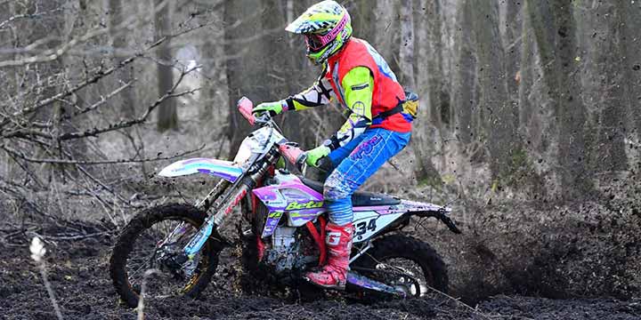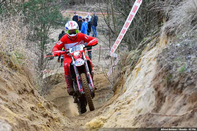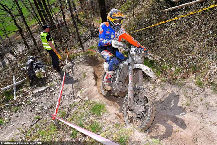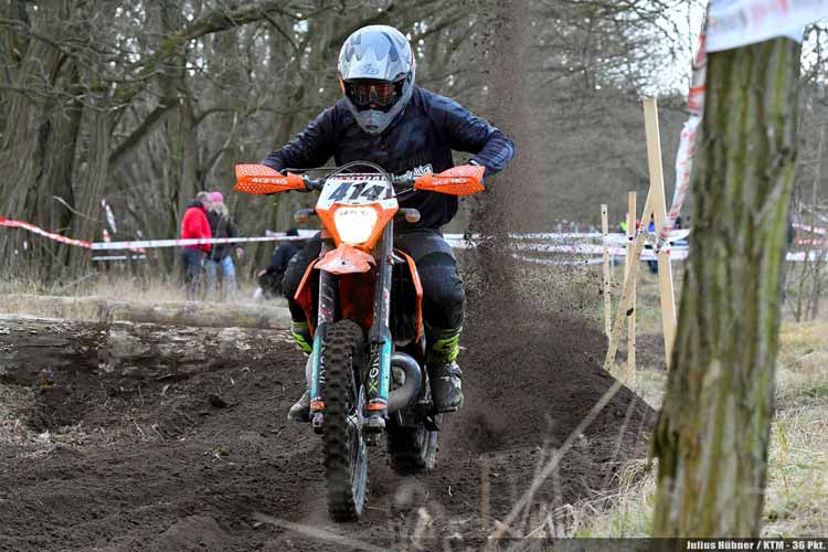 Und der Beta-Fahrer wurde bei den ersten beiden Läufen seiner Favoritenstellung auch durchaus gerecht. In Tucheim, wie auch in Dahlen stand der Allgäuer auf dem obersten Treppchen und führt damit das E2B-Klassement souverän mit der Maximalpunktezahl an. Alfred Reimer, einer der wenigen Honda-Fahrer im Feld, bot Maxi Schek beim Saison-Auftakt am meisten Paroli, knüpfte ihm dabei gleich mehrere Bestzeiten ab und wurde am Ende starker Zweiter. Das Podest komplettierte Julius Hübner auf KTM. Für den jüngeren Bruder von Edward Hübner war es die erste Top-Drei-Platzierung. Oliver Otte wurde in Tucheim Vierter, in Dahlen sogar Zweiter. Da der KTM-Fahrer und Gesamtsieger des DMSB-Enduro-Cup 2016 jedoch mit einer C-Lizenz startet, erhält er keine Punkte für die Gesamtwertung. Somit gingen die Zähler für den zweiten Rang an den Tagesdritten Arvid Meyer (Husqvarna), der dadurch in der Tabelle einen Riesensprung von der sechsten auf die dritte Position macht. Dahinter setzte sich Alfred Reimer mit nur 1,2 Sekunden Vorsprung denkbar knapp gegen Hauke Neddermeyer (GasGas) durch und verteidigt damit erfolgreich seine zweite Position im E2B-Ranking.