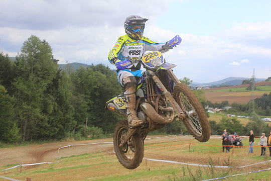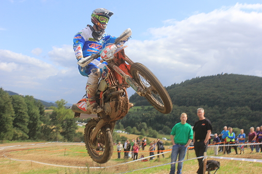 Dennis Schröter hat in Waldkappel erneut einen großen Schritt Richtung Meistertitel im Championat sowie in der Enduro 3 Klasse gemacht. Der Husqvarna Pilot galt lange Zeit eigentlich als Sandspezialist, nun aber mit der 300er 2 Takt Maschine kommt er auch auf festen Untergrund deutlich besser zurecht.
