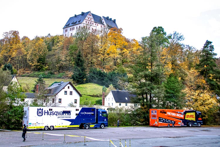 Die Luft ist voller Vorfreude und Spannung. Im Getzenwald kündigt sich ein Spektakel an, das Enduro-Fans das Herz höherschlagen lässt. Factory Teams wie KTM und Husqvarna parken ihre Trucks bereits im neuen Paddock, direkt an der Zschopau und unterhalb der Scharfensteiner Burg. Die Fahrer sind fleißig beim Trainieren, und die Crew setzt letzte Hand an die Strecke.