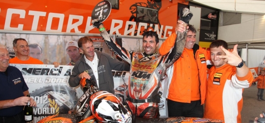Nachdem sich am ersten Fahrtag bereits Christophe Nambotin ( Enduro 3 ) und Matthias Bellino ( Junioren ) ihre WM Titel sicherten holte sich heute Antoine Meo den Titel in der Enduro 1. Auf den tagessieg verzichtete der Franzose heute, bei schwierigen Bedingungen war der Titel heute das oberste Ziel.