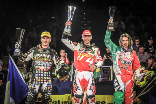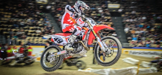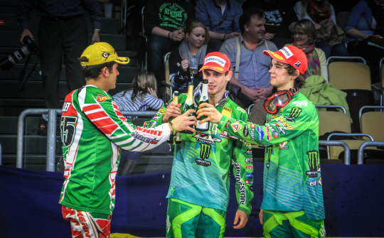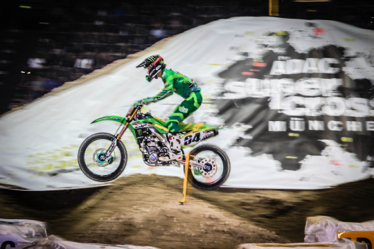 In der kleinen SX2 Klasse gingen bisher alle Siege an Dominique Thury. Der Freitagabend in München war allerdings kein gutes Pflaster für den Pfeil Kawasaki Piloten. Nique verpatzte seine Starts und konnte auf der schnellen Strecke, die kaum Überholmöglichkeiten bot, sehr schwer Boden gut machen. Hinzu kam ein Blockpass von Thurys Teamkollegen „Silvio“ Jaulin im ersten Lauf. Er fuhr in der letzten Kurve in die Spur von „Nique“ und raubte ihm so den Sieg. Im zweiten Lauf das gleiche Spiel. Ein schlechter Start verbaute ihm die Aussicht auf den Sieg. Da half Ihm auch sein unglaublicher Speed im Waschbrett nichts. Lauf 2 beendete der Bad Schlemaer auf Platz 4. In der Tagesendabrechnung bedeutete dies nur Platz 3 hinter Jaulin und Simon Mallet.