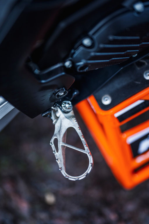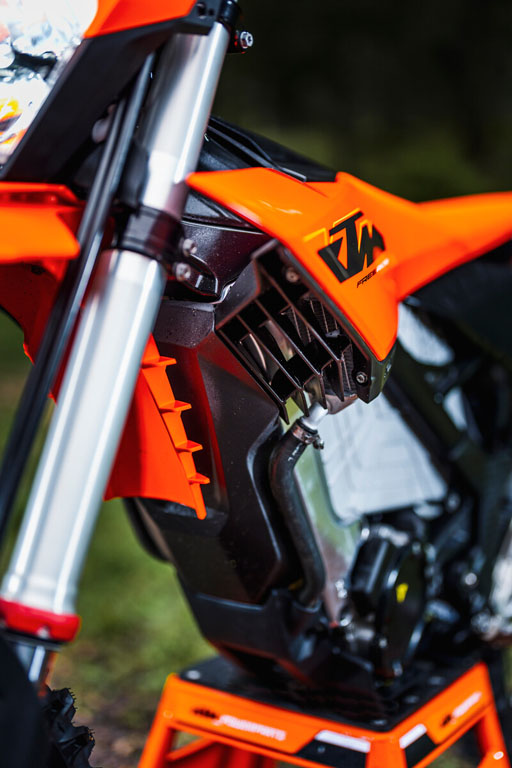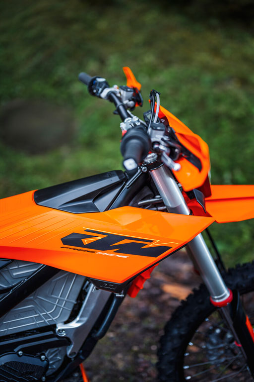- Fahrwerk und Geometrie: Das neue, leichte Fahrwerk besteht aus einem Chrom-Molybdän-Stahl-Rahmen, der den Motor und die Batterie trägt. Mit einem Gesamtgewicht von unter 115 kg und einer Sitzhöhe von 906 mm bleibt die FREERIDE E besonders wendig und komfortabel.