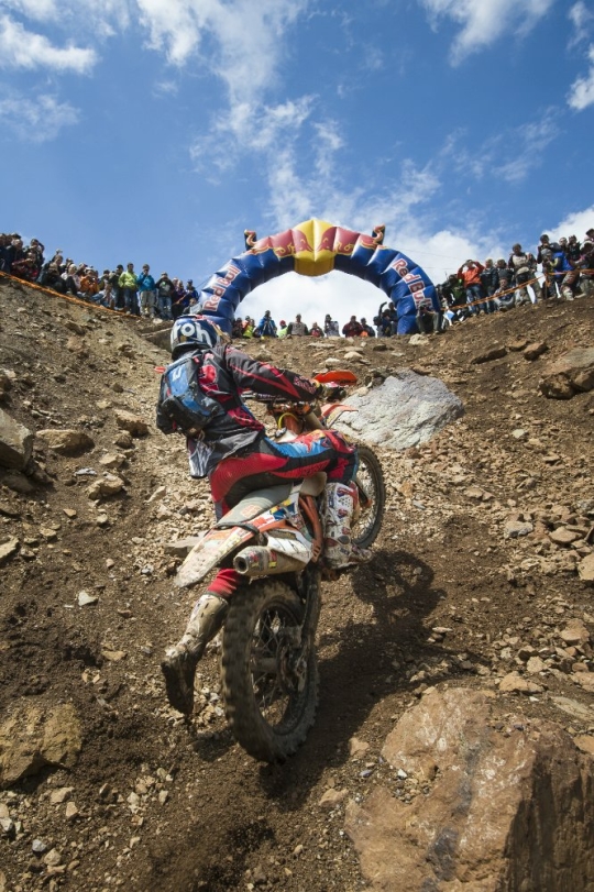 Beim härtesten Eintages-Extreme-Enduro-Rennen der Welt starteten am Sonntag wieder 500 Fahrer auf der extrem schwierigen Strecke des Red Bull Hare Scrambles um und auf dem Erzberg. Es war bereits die 20. Ausgabe des jährlich stattfindenden Events am Erzberg, an dem über Jahrhunderte schon Eisenerz abgebaut wird. Nach 2012 sicherte sich KTM Werksfahrer Jonny Walker mit einem beeindruckenden Vorsprung auf den Zweitplatzierten einen weiteren Sieg beim Red Bull Hare Scramble. Der 23-jährige aus dem britischen Cumbria erwischte auf seiner KTM 300 EXC einen nahezu perfekten Start aus der ersten Startreihe und ließ die Konkurrenz bereits kurz nach dem ersten Steilhang im wahrsten Sinne des Wortes stehen.