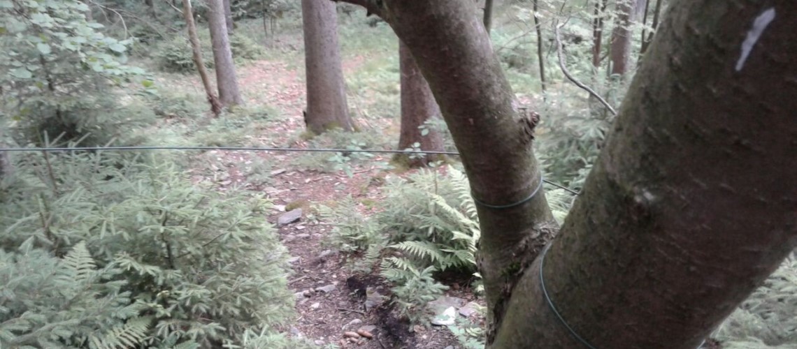 Uns haben nun neue Fotos erreicht die gespannte Seile auf Kopfhöhe zeigen. Vor ein paar Wochen gab es schon Fotos mit Nagelbrettern in dieser Region. Dies ist ein Anschlag auf die Gesundheit der Menschen und auch Tiere die ja meist von den Menschen geschützt werden sollen. Davon betroffen können auch Wanderer und Mountainbiker sein.